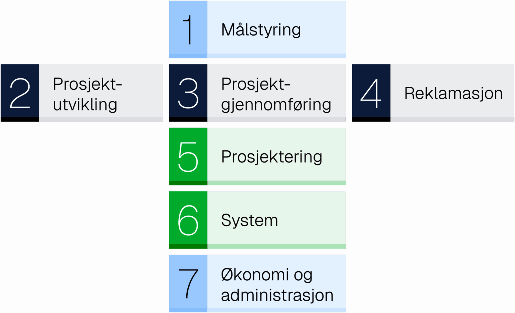 Engelsen Total sin prosjektgjennomføringsmodell er nøkkelen i vårt kvalitetsarbeid og viser sammenhengen mellom våre: